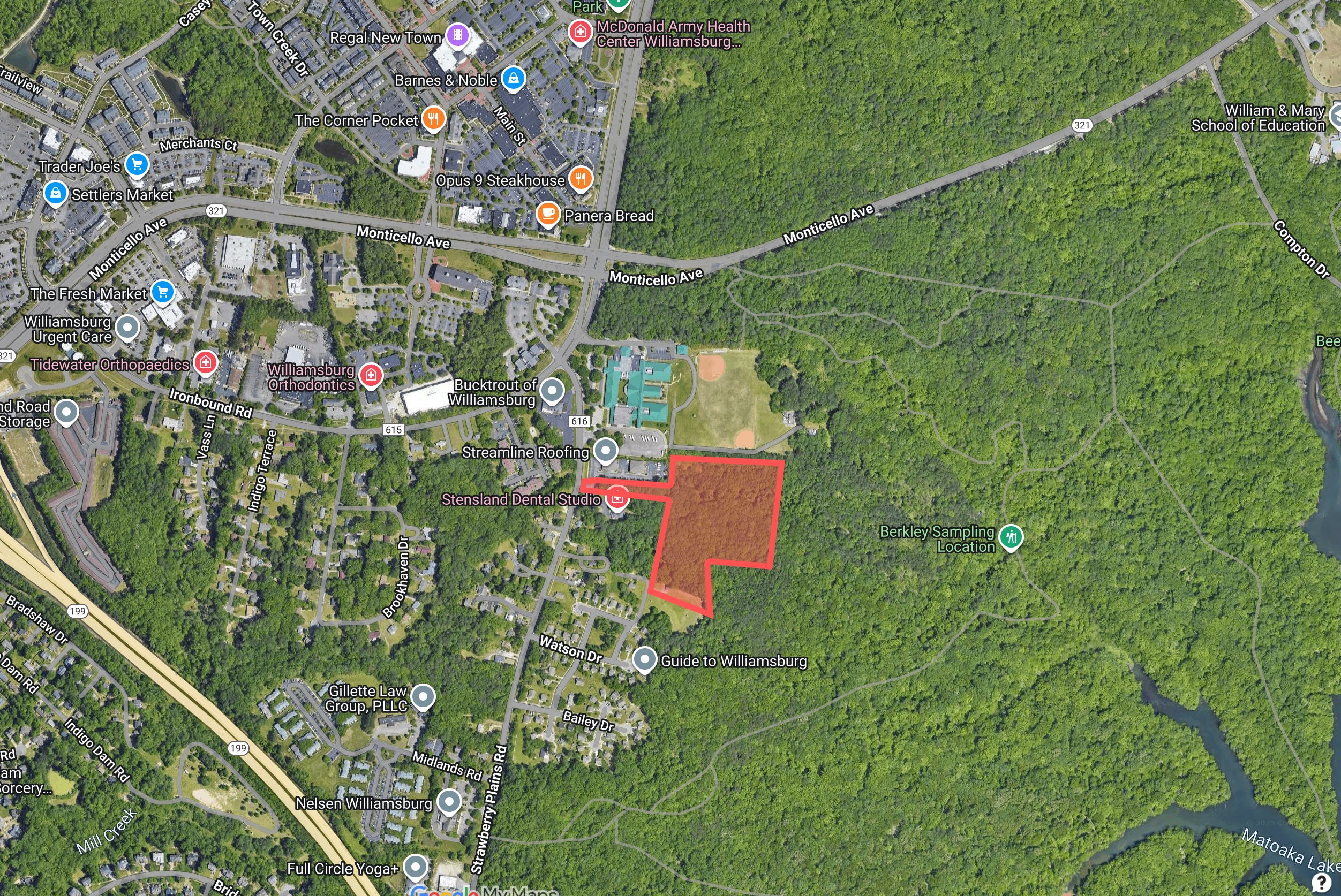 According to information received as part of a Freedom of Information Act (FOIA) request filed with the City of Williamsburg, interest in 13+ acres of City-owned land on Strawberry Plains Road continues to attract attention from potential developers. The City’s response indicates that a representative of a large homebuilder, Ryan Homes, reached out to the City in April as to the property’s availability. Back in 2024, a deal to sell the land to a different developer in order to build over 100 townhouses wound up being tabled without further action.