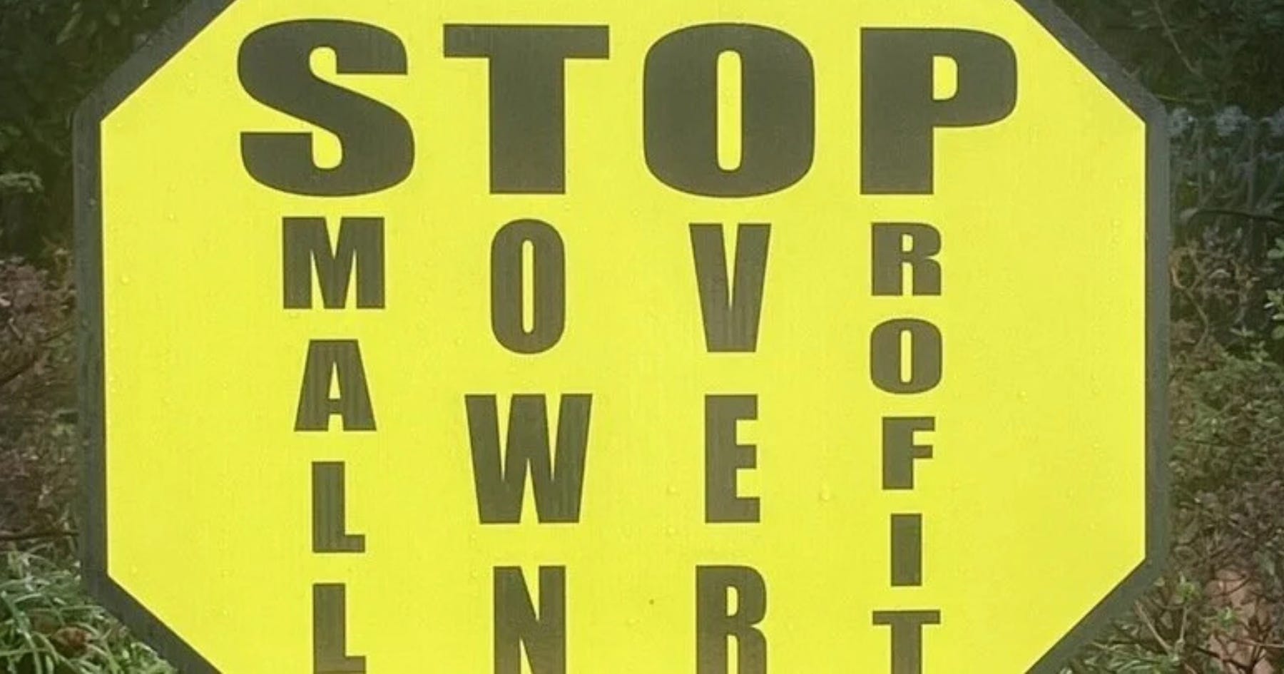 The yellow signs are the size of other typical political yard signs and read “STOP” which stands for “Small Town Over Profit.” The signs were created and posted in response to the City’s proposal to rezone multiple blocks downtown, which a report by James Robinson in the Daily Press notes could pave the way for new high-density, mixed-use development, including land where the City-owned Triangle and Blayton buildings currently sit. The Blayton Building has been housing for the City’s elderly since 1981 according to the City.