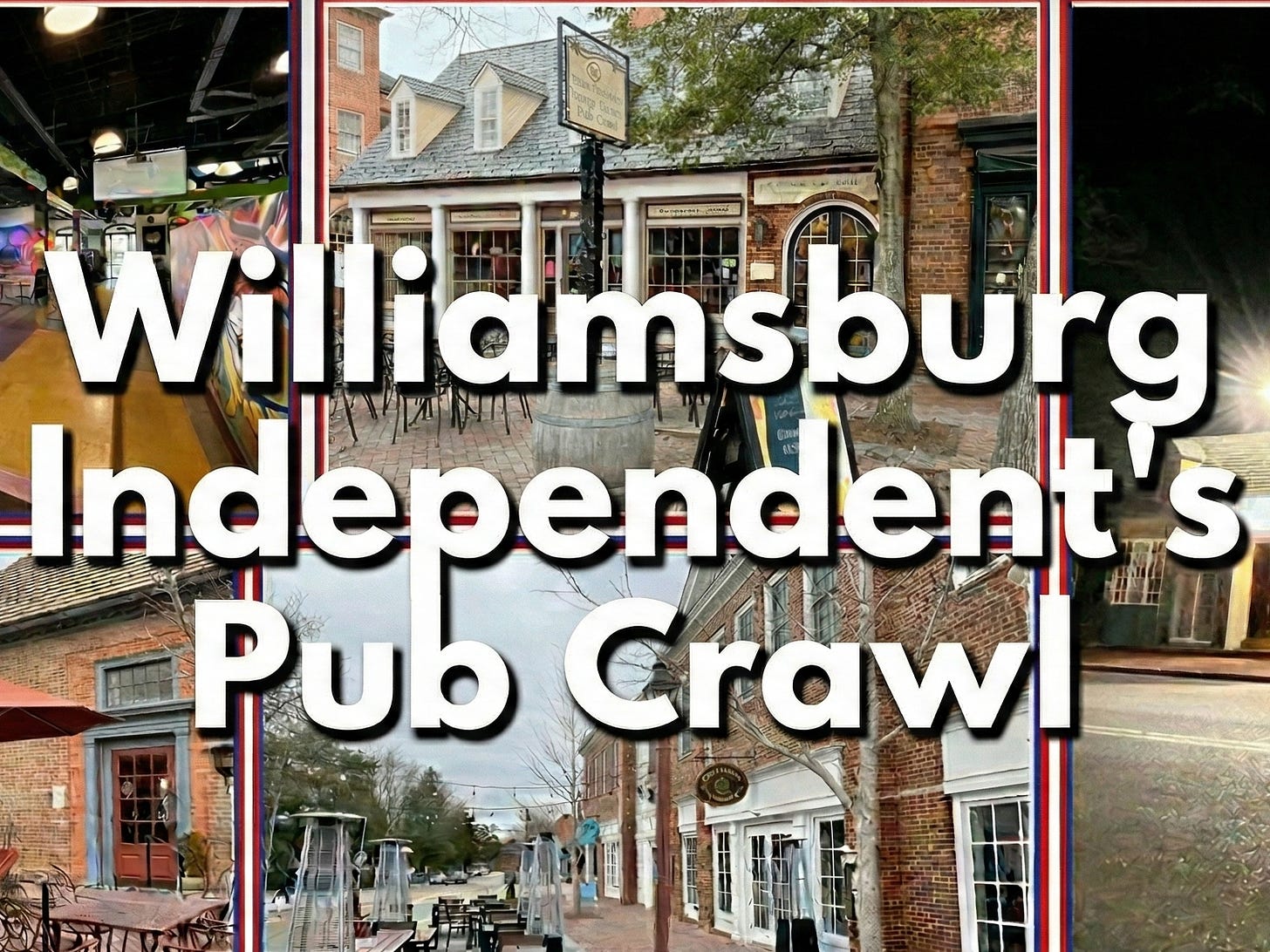Williamsburg Independent’s pub crawl offers a seamless transition from the historic charm of Merchants Square to a divey atmosphere near the College of William & Mary campus. The route covers a total distance of approximately 0.7 miles with a collective walking time of roughly 12 to 15 minutes.